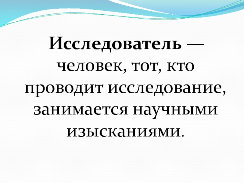 Слайд 6 Исследователь — человек, тот, кто проводит исследование, занимается научными изысканиями.