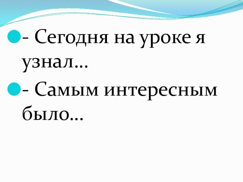 - Сегодня на уроке я узнал…- Самым интересным было…