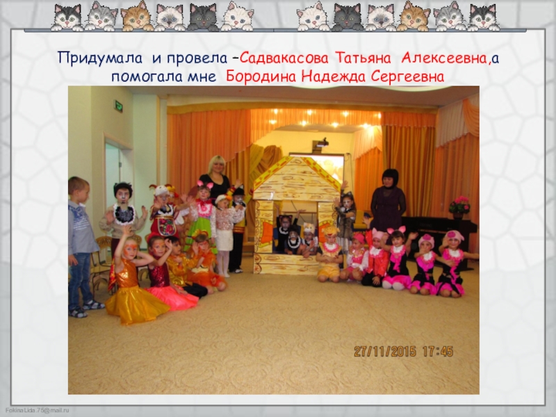Слайд 17Придумала и провела –Садвакасова Татьяна Алексеевна,а помогала мне Бородина Надежда Сергеевна