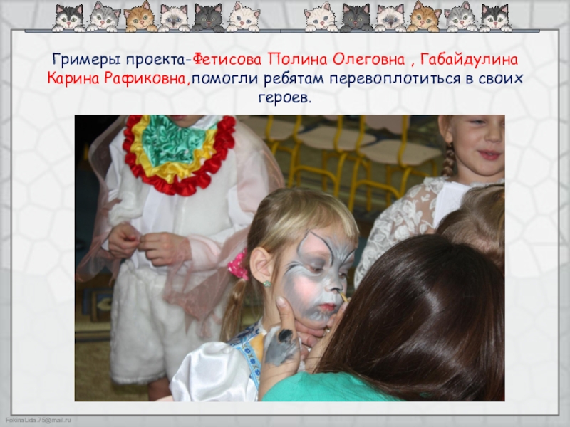 Слайд 10Гримеры проекта-Фетисова Полина Олеговна , Габайдулина Карина Рафиковна,помогли ребятам перевоплотиться в
