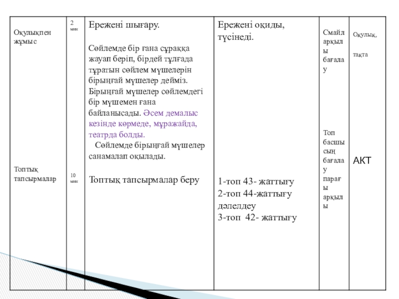 Оқушылардың бір сұраққа жауап беріп, бірдей тұлғада айтылған сөздердің сөйлемнің бірыңғай мүшелері болатынын түсіндіру;