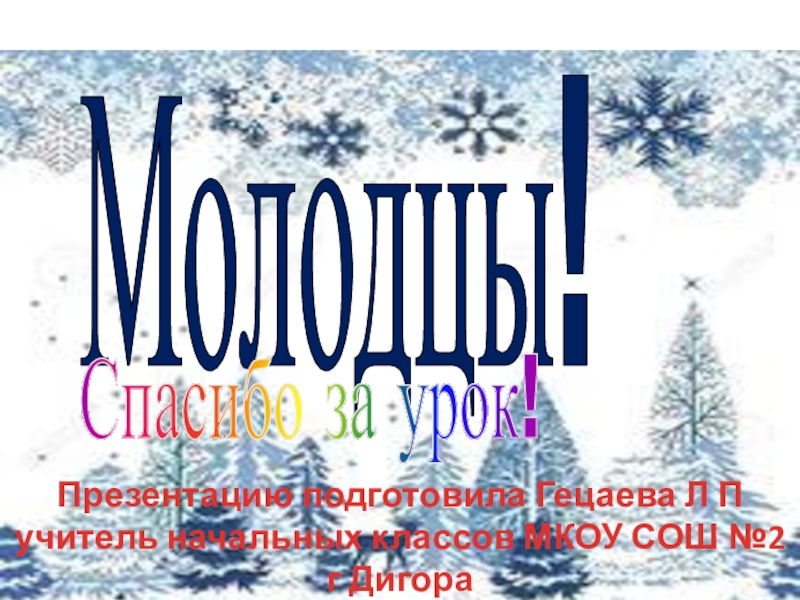 Молодцы!Спасибо за урок!Презентацию подготовила Гецаева Л Пучитель начальных классов МКОУ СОШ №2г Дигора