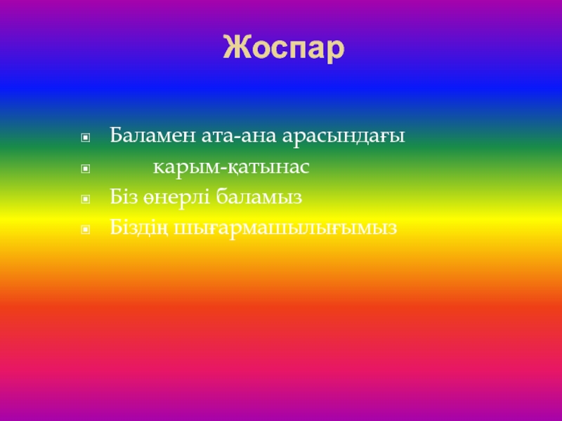 Жоспар Баламен ата-ана арасындағы     карым-қатынасБіз өнерлі баламызБіздің шығармашылығымыз