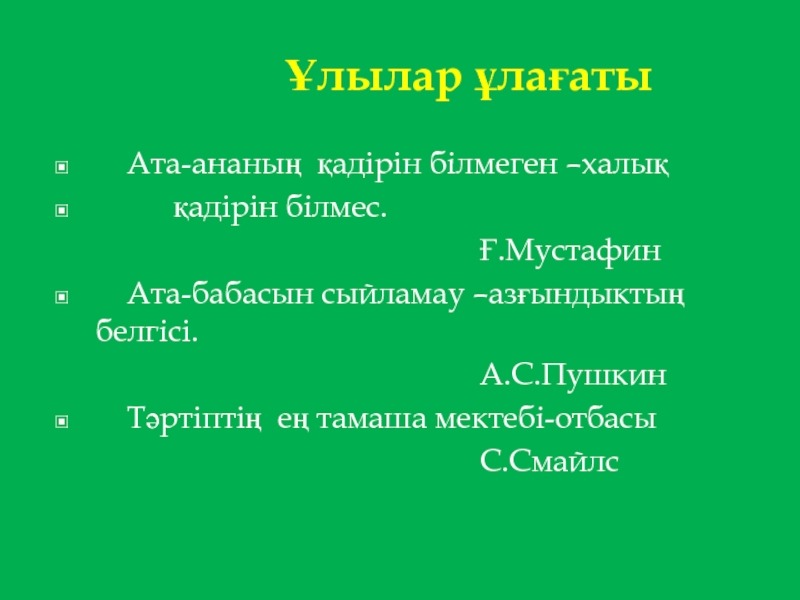 Ұлылар ұлағаты   Ата-ананың қадірін білмеген –халық