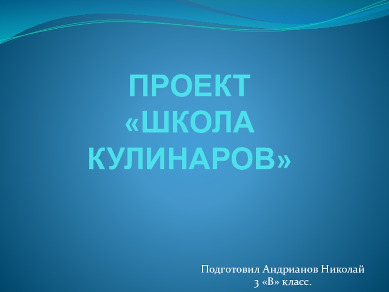 ПРОЕКТ «ШКОЛА КУЛИНАРОВ»Подготовил Андрианов Николай3 «В» класс.
