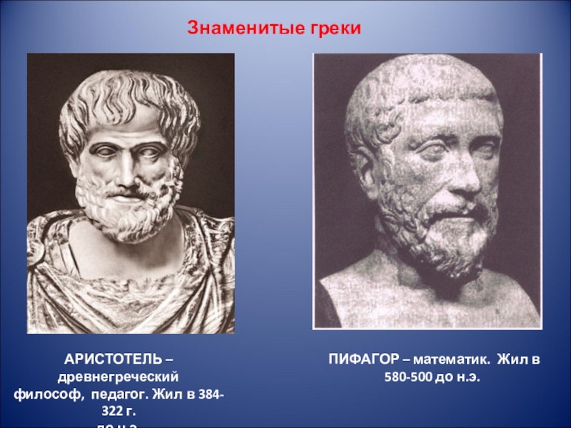 ПИФАГОР – математик. Жил в 580-500 до н.э.