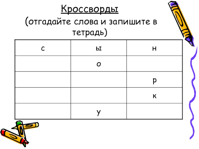Слайд 4Кроссворды (отгадайте слова и запишите в тетрадь)