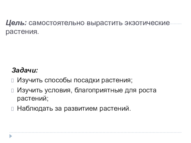 Слайд 2Цель: самостоятельно вырастить экзотические растения.