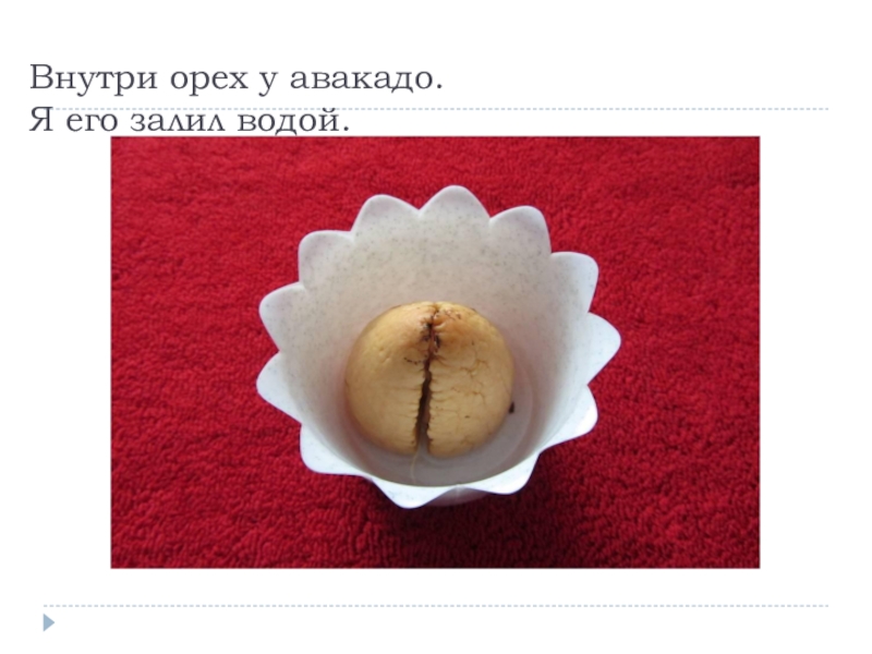 Слайд 8Внутри орех у авакадо. Я его залил водой.