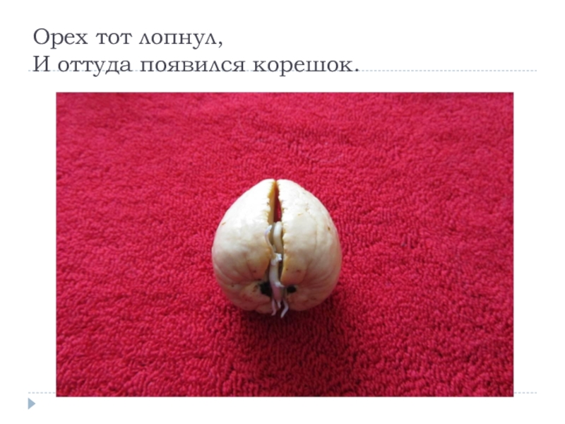 Слайд 9Орех тот лопнул, И оттуда появился корешок.