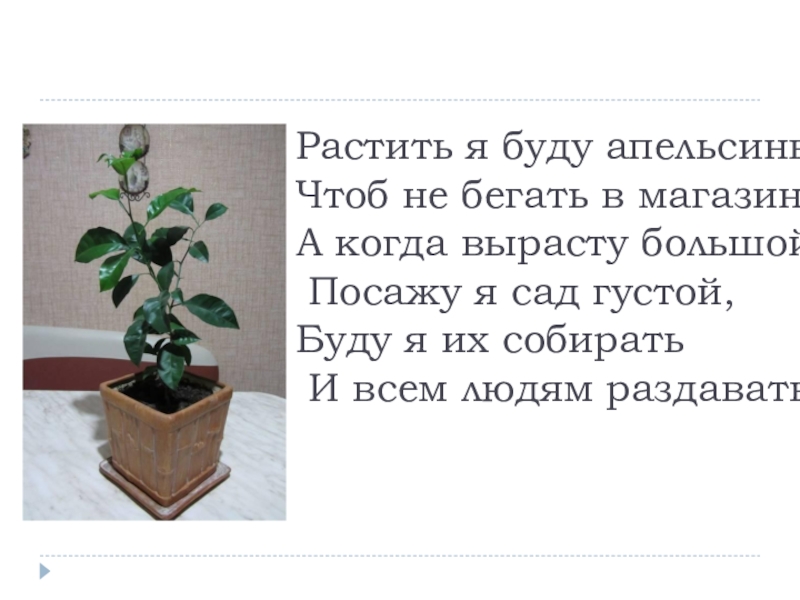 Слайд 5Растить я буду апельсины, Чтоб не бегать в магазины. А когда вырасту большой,