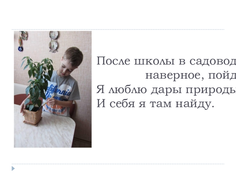 После школы в садоводы,        наверное, пойду. Я люблю дары природы