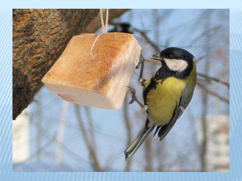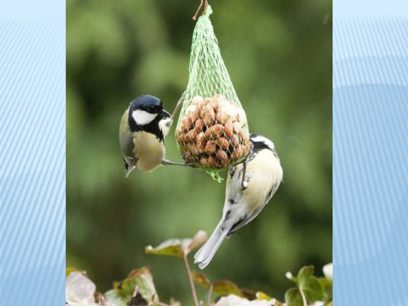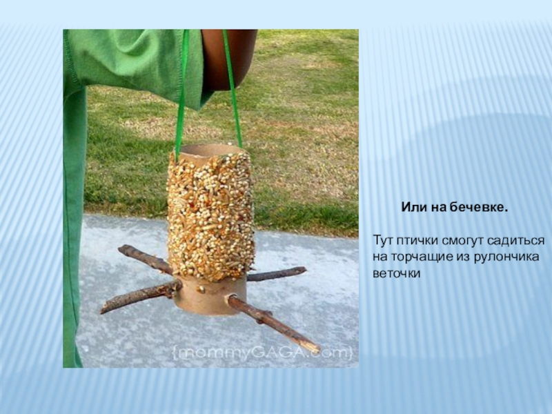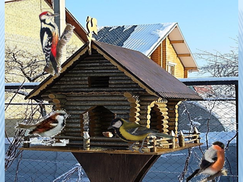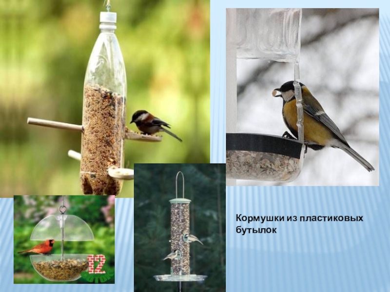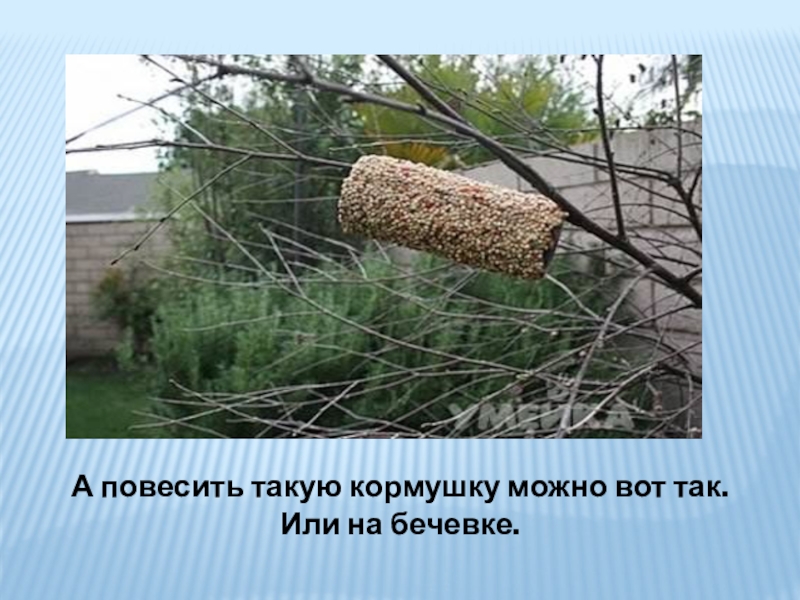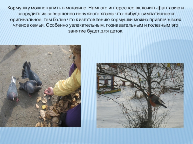 Слайд 22Кормушку можно купить в магазине. Намного интереснее включить фантазию и соорудить