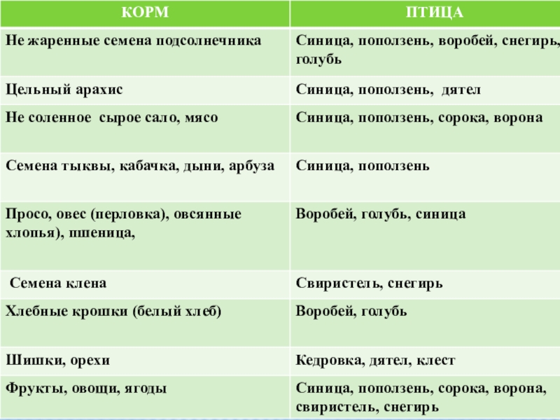 2. Корм: арахис, плоды шиповника (рябины или др. ягоды), тыквенные семечки, изюм, кусочки овощей, крупные семечки подсолнечника
