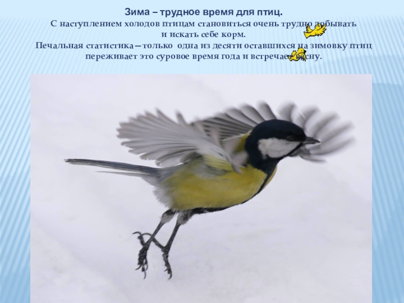 Печальная статистика—только одна из десяти оставшихся на зимовку птиц переживает это суровое время года и встречает весну.
