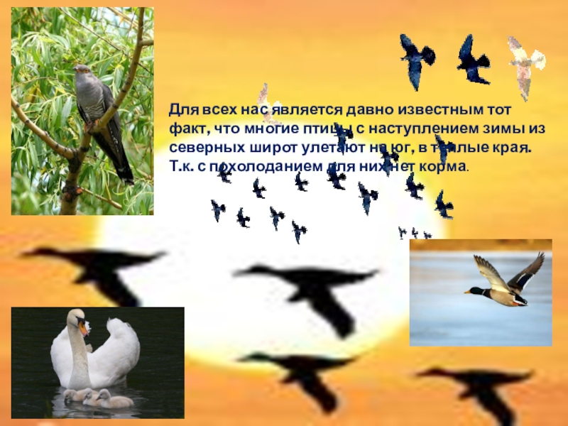 Слайд 1Для всех нас является давно известным тот факт, что многие птицы