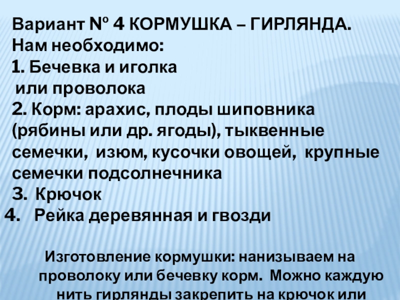 Слайд 38Вариант № 4 КОРМУШКА – ГИРЛЯНДА.