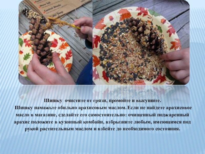 Слайд 32Шишку очистите от грязи, промойте и высушите.