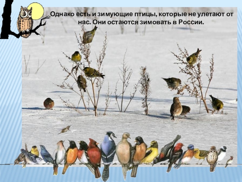 Слайд 2Однако есть и зимующие птицы, которые не улетают от нас. Они