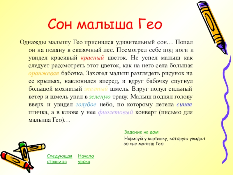 Нарисуй у картинку, которую увидел во сне малыш Гео