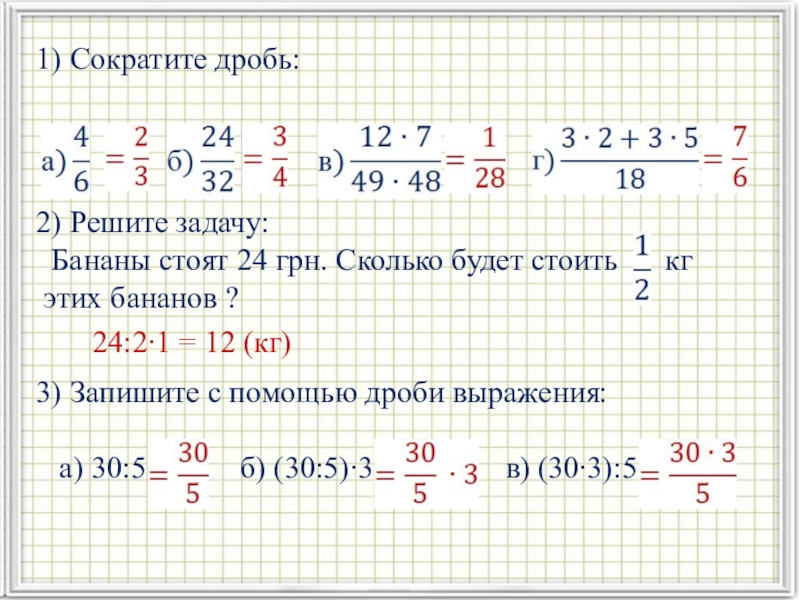 3) Запишите с помощью дроби выражения: