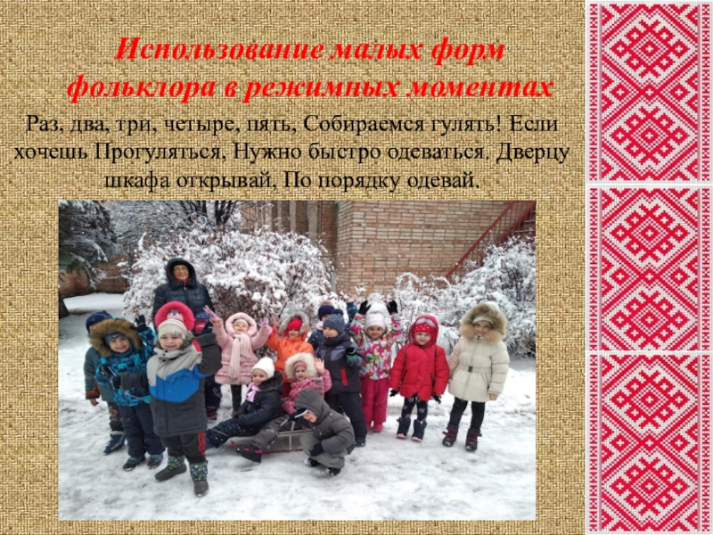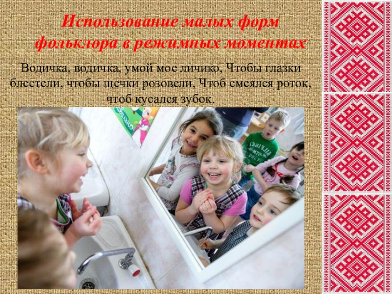 - Использовать все виды народного творчества в работе с детьми.