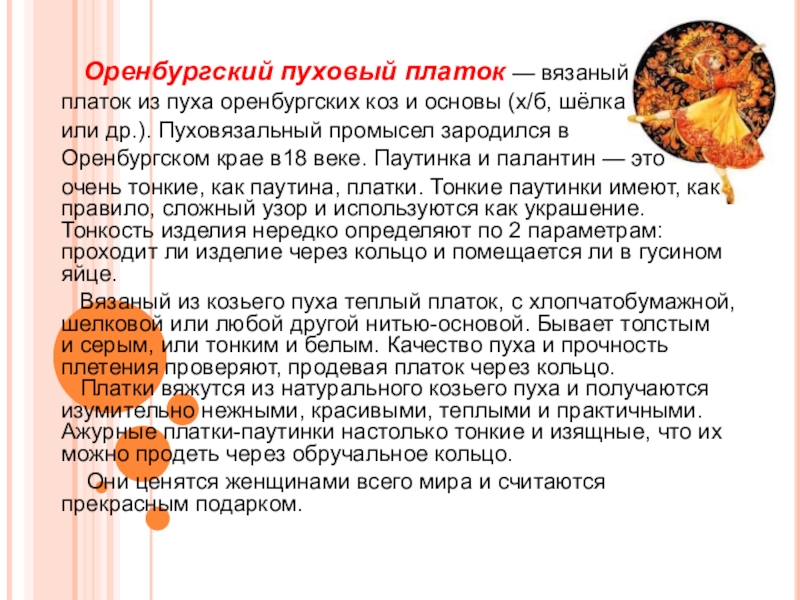 Оренбургском крае в18 веке. Паутинка и палантин — это