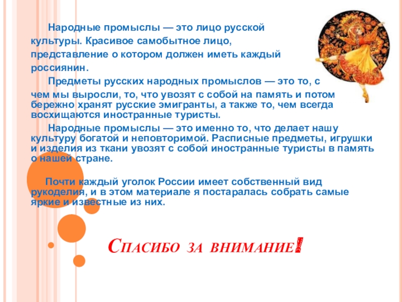 Народные промыслы — это именно то, что делает нашу культуру богатой и неповторимой. Расписные предметы, игрушки и изделия из ткани увозят с собой иностранные туристы в память о нашей стране.