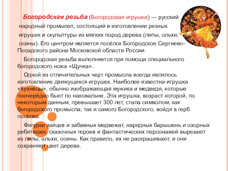 Слайд 23 Богородская резьба (Богородская игрушка) — русский