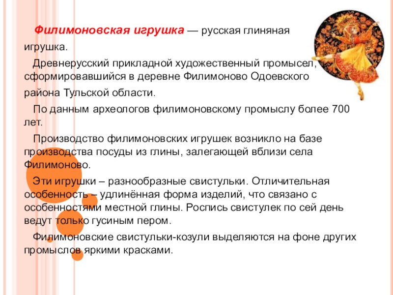 Древнерусский прикладной художественный промысел, сформировавшийся в деревне Филимоново Одоевского