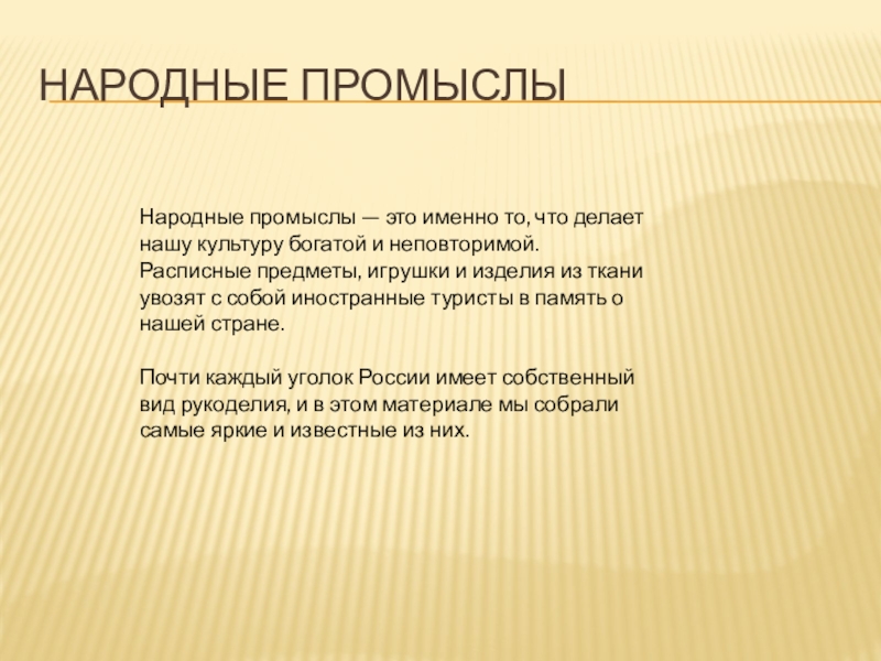 культуру богатой и неповторимой. Расписные предметы, игрушки и изделия из ткани увозят с собой иностранные туристы в память о нашей стране.