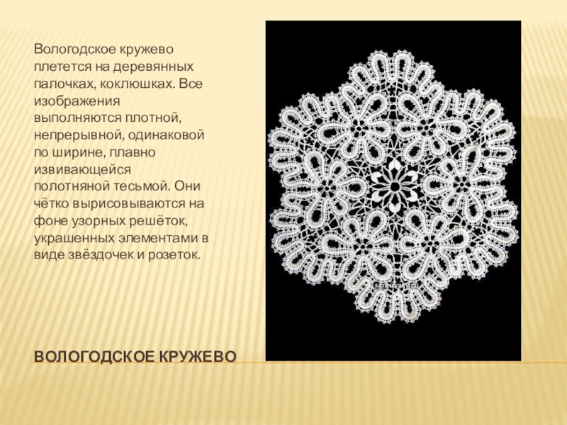 Вологодское кружево плетется на деревянных палочках, коклюшках. Все изображения выполняются