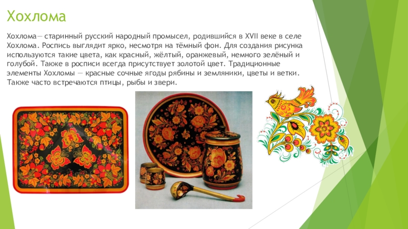 Хохлома— старинный русский народный промысел, родившийся в XVII веке в селе
