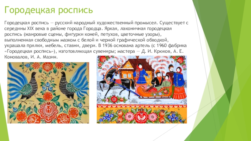 Городецкая роспись — русский народный художественный промысел. Существует с середины
