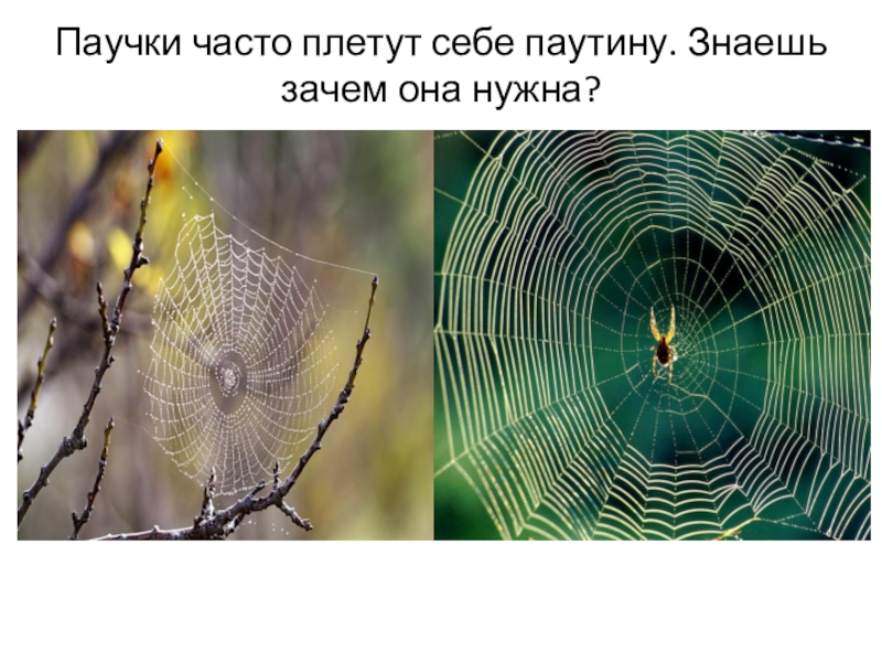 Слайд 41Паучки часто плетут себе паутину. Знаешь зачем она нужна?