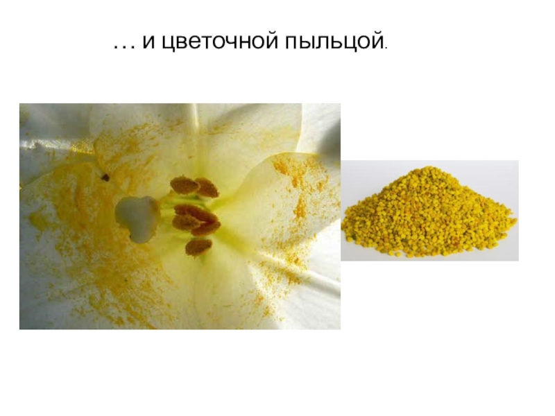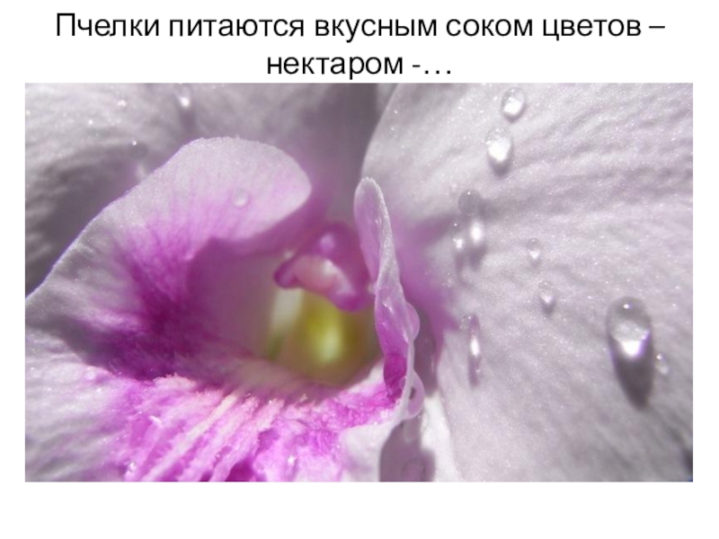 Слайд 23Пчелки питаются вкусным соком цветов – нектаром -…