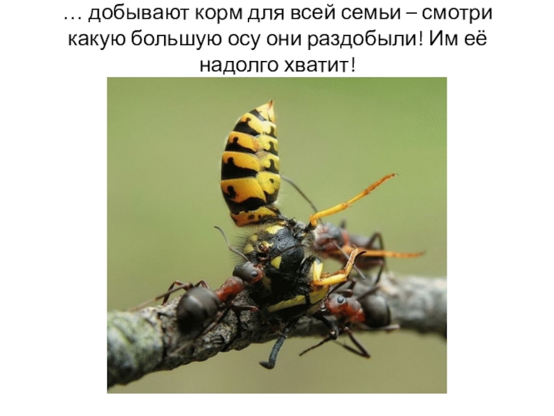 Слайд 15… добывают корм для всей семьи – смотри какую большую осу