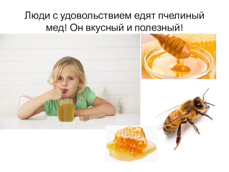 Слайд 26Люди с удовольствием едят пчелиный мед! Он вкусный и полезный!