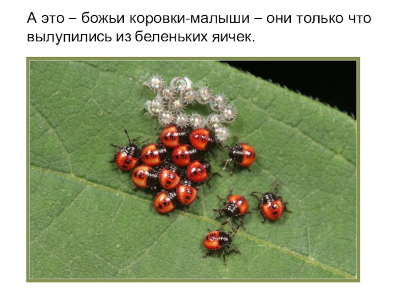 Слайд 7А это – божьи коровки-малыши – они только что вылупились из