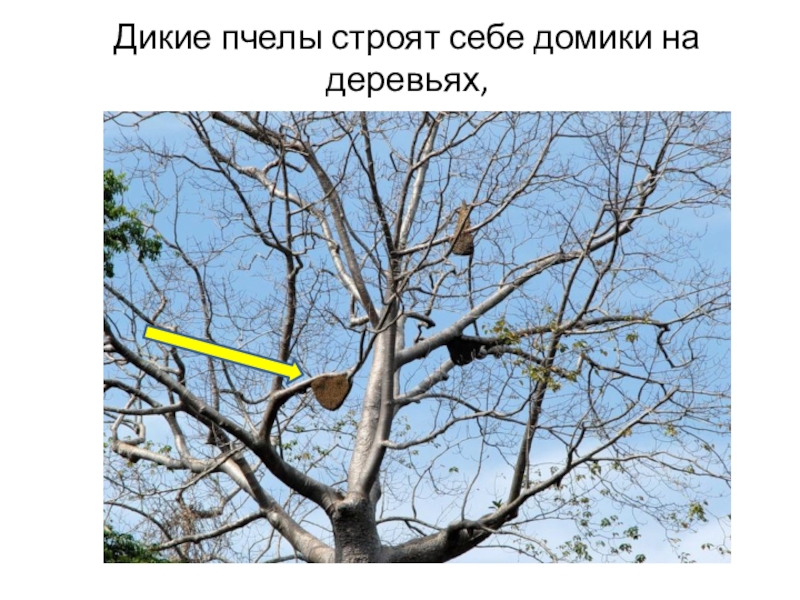 Слайд 21Дикие пчелы строят себе домики на деревьях,