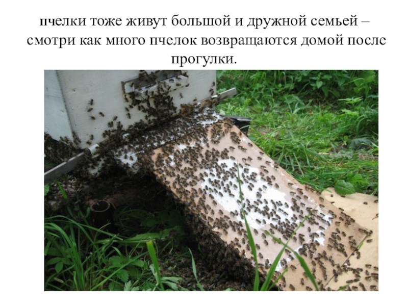 Слайд 19ПЧелки тоже живут большой и дружной семьей – смотри как много