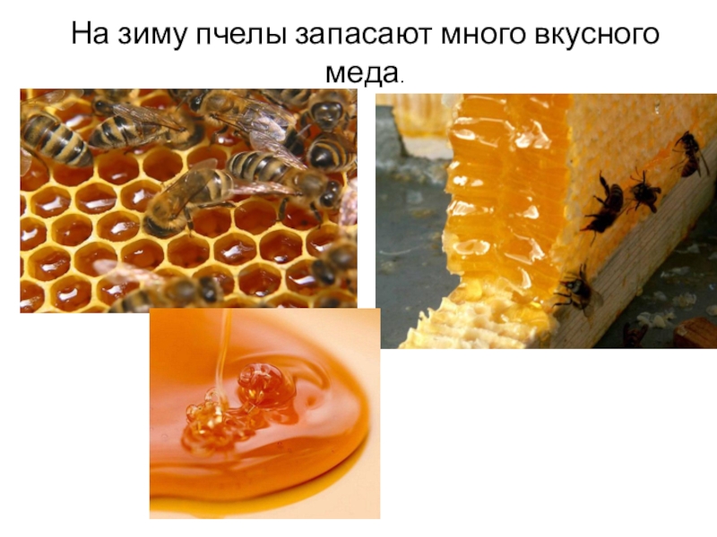 Слайд 25На зиму пчелы запасают много вкусного меда.