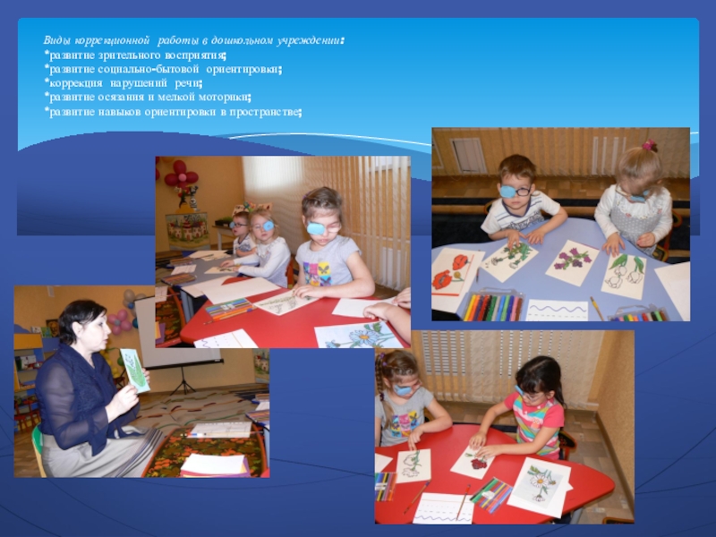 Слайд 7Обучение и воспитание детей с нарушением зрения в детском саду