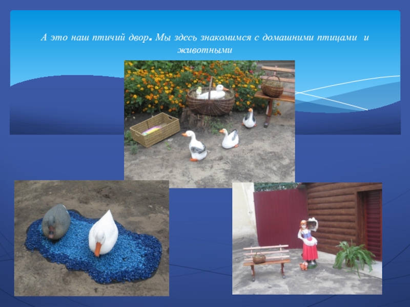 Слайд 49А это наш птичий двор. Мы здесь знакомимся с домашними птицами