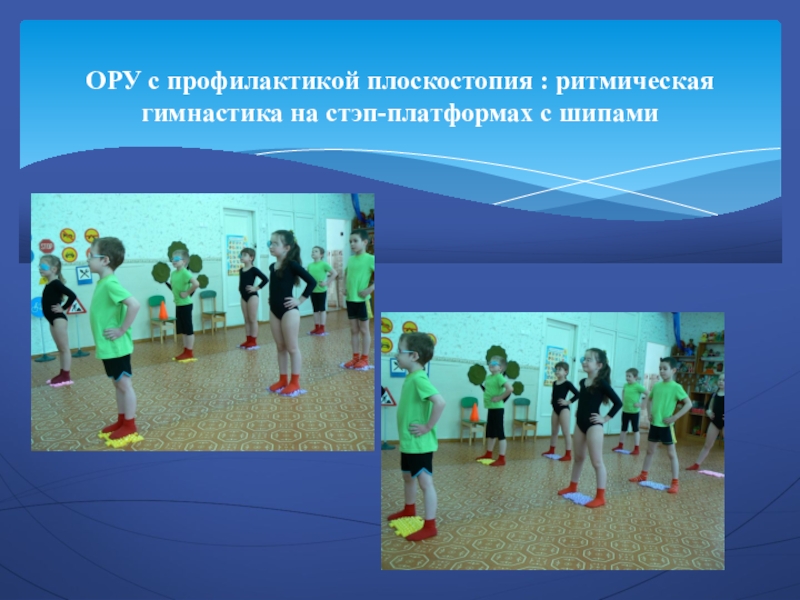 Слайд 20ОРУ с профилактикой плоскостопия : ритмическая гимнастика на стэп-платформах с шипами