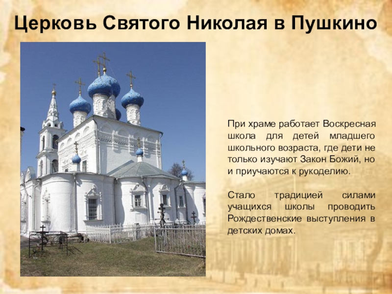 Слайд 8Церковь Святого Николая в Пушкино