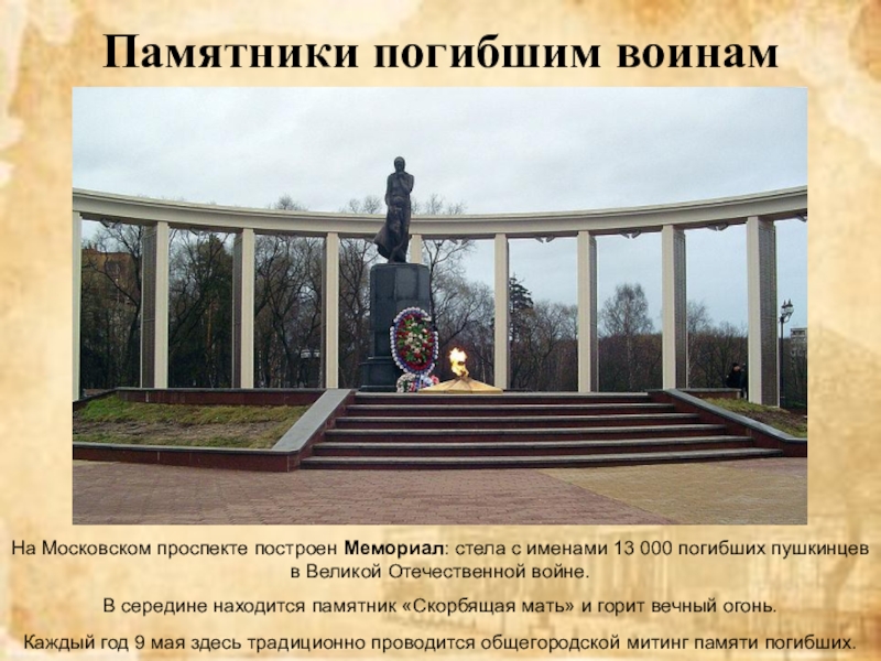Слайд 12Памятники погибшим воинам