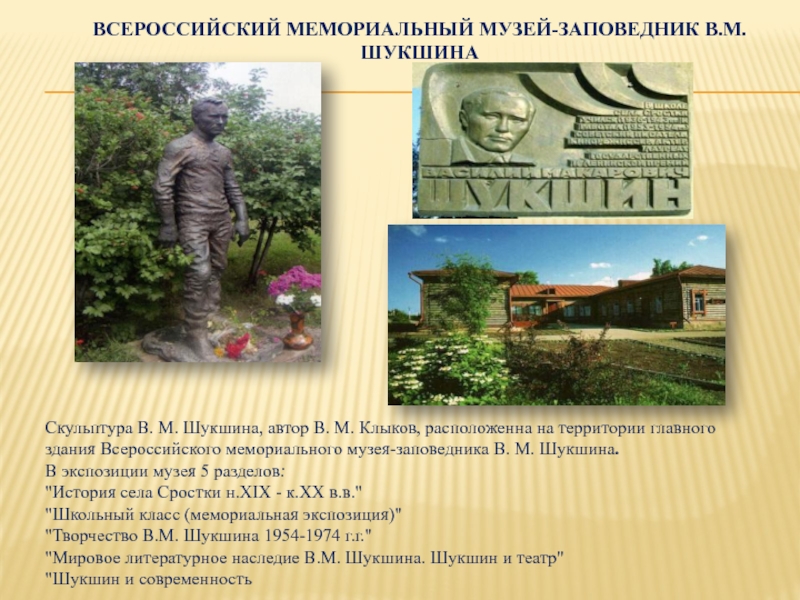 Слайд 11Всероссийский мемориальный музей-заповедник В.М. Шукшина
