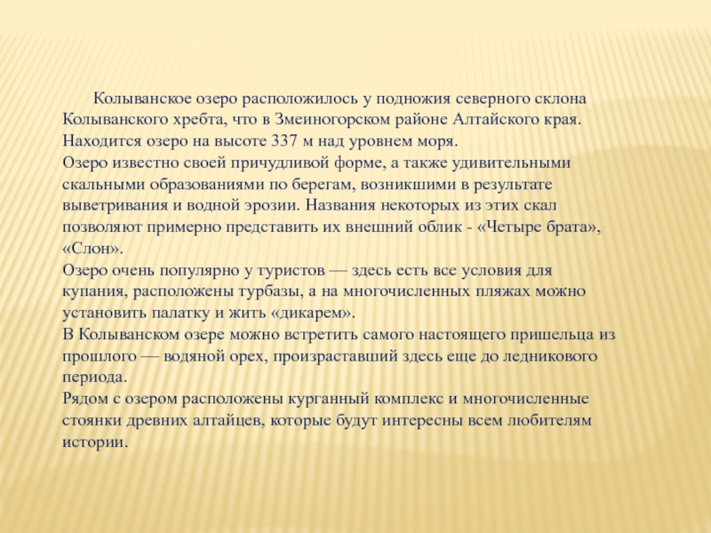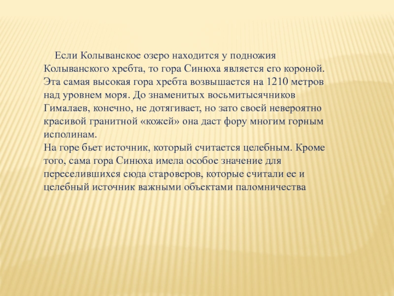 Слайд 25 Колыванское озеро расположилось у подножия северного склона