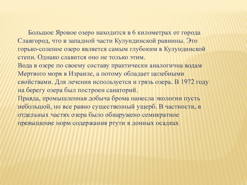 Слайд 23 Большое Яровое озеро находится в 6 километрах от